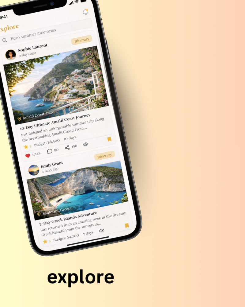 Our app, however, is where the travel community comes alive. Unlike the website’s pre-designed itineraries, the app allows travellers to build and share their own trips, recommendations, and experiences. Discover real journeys created by real people, save your favourites, or create your own to inspire others.