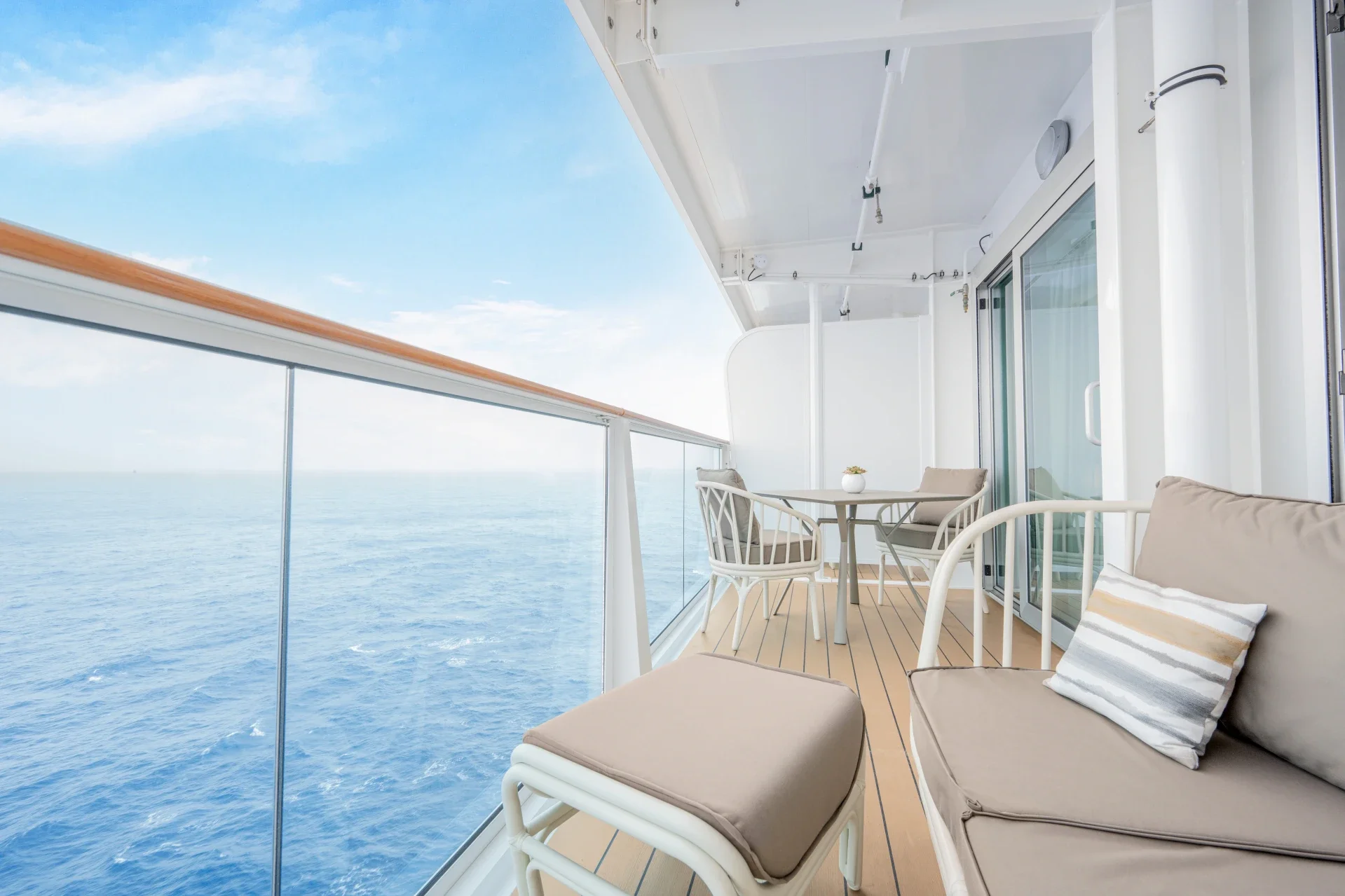 Oceanview or Balcony Cabins offer private windows or balconies, giving families natural light, scenic views, and a little outdoor space. These cabins strike a balance between budget and comfort. The downside is a slightly higher cost, and families with toddlers need to consider balcony safety.