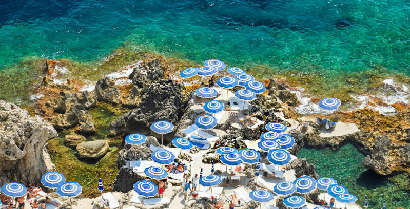 Fontelina Beach in Capri is an iconic beach club renowned for its breathtaking views of the Mediterranean and the Faraglioni rocks. Perched on a picturesque cliffside, it offers guests direct access to crystal-clear waters, comfortable sun loungers, and attentive service, creating a truly luxurious seaside experience. The club is famous for its relaxed yet elegant atmosphere, fresh seafood, and refreshing cocktails, making it perfect for both daytime relaxation and enjoying spectacular sunsets. With its stunning location, high-quality amenities, and quintessential Italian charm, Fontelina Beach provides an unforgettable beach club experience for travellers seeking beauty, comfort, and style.